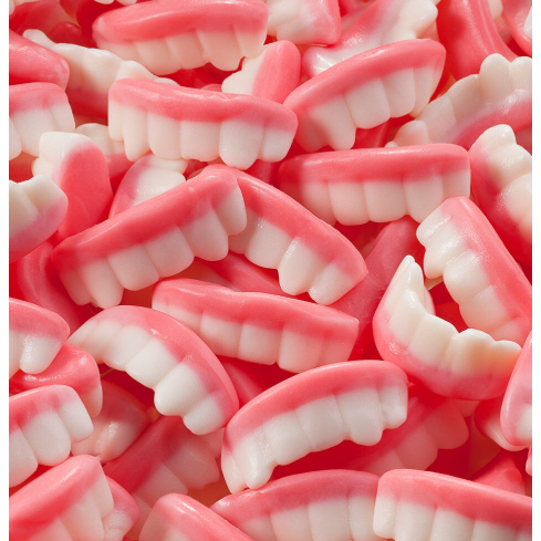 Dentaduras Fini, um clássico da marca. Docinha, macia e saborosa, possuem formato de dentes e são ricas em cada detalhe. No pacote contém dentaduras nas cores rosa e branco com sabor de morango e framboesa. Pacote com 250g de produto, ideal para dividir com os amigos. E perfeito para usar em decorações de mesas de festas e pratos de confeitaria, tornando tudo mais colorido, com um toque único e especial!