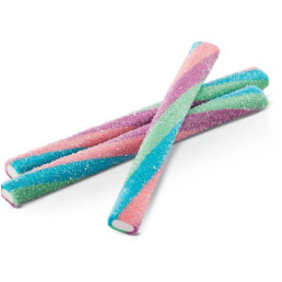 Ingredientes Açúcar, xarope de glicose, farinha de trigo (enriquecida com ferro e ácido fólico), água, amido de milho modificado, gordura vegetal de palma, acidulante ácido cítrico, umectante glicerina, reguladores de acidez: citrato de sódio e ácido málico, aromatizantes, gelificante gelatina, corante inorgânico dióxido de titânio, emulsificante mono e diglicerídeos de ácidos graxos e corantes artificiais: vermelho 40, azul brilhante FCF, amarelo tartrazina, azul indigotina.