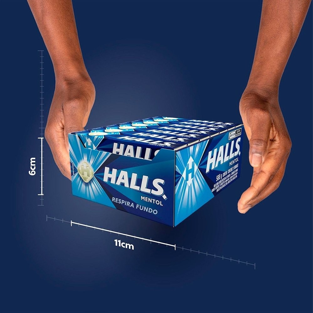 Características do Produto Marca: Halls Sabor: Mentol Especificações Gerais do Produto: Modo de Conservação: Temperatura Ambiente Produto com Alto Teor de Açúcar Adicionado Alérgicos: Contém derivados de soja. Não contém glúten. Dimensões: Dimensões da embalagem do produto (LxA): 11,0 x 6,0 cm Fornecedor: Halls
