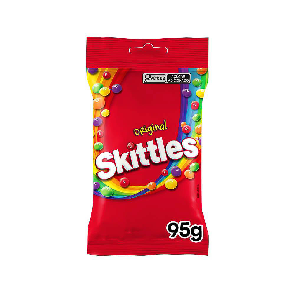 Skittles Original Cada pacote de Skittles Original 95g dá a oportunidade de provar o arco-íris, com uma variedade de sabores de fruta surpreendente. Os sabores incluem limão siciliano, laranja, limão,