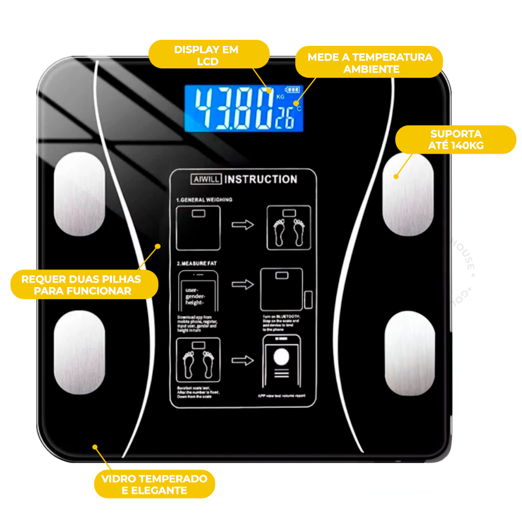 Balança Digital com Bioimpedância – Tecnologia, Estilo e Saúde em um só produto! Melhore sua performance diariamente com dados precisos sobre o seu corpo. Com conexão via Bluetooth ao app OKOK-International (IOS e Android), você acompanha sua evolução de forma inteligente e visual. Monitore indicadores essenciais: • Peso • IMC • Nível de Água • Gordura Visceral • Massa Óssea • Nível de Proteína • Obesidade • Idade Corporal • LBM (massa magra) Características da balança: • Capacidade de até 140kg • Registra até 4 perfis de usuário • Conexão Bluetooth com o app • Mede IMC e gordura corporal • Display digital em LED iluminado • Plataforma de vidro antiderrapante • Funciona com 2 pilhas AAA (não inclusas) • Desligamento automático • Acionamento automático ao subir na balança • Design ultrafino, compacto e elegante • Vidro temperado e acabamento sofisticado • Unidades: Kg / Lb • Indicação de carga de bateria Dimensões: • 26cm de largura • 26cm de comprimento • 3cm de altura OBS: Não use em carpete ou superfície macia Pise cuidadosamente Configure o APP de acordo com o manual de instrução para um funcionamento perfeito Itens Incluso: 1 Unidade: Balança de Vidro Temperado 1 Manual de Instruções Português Balança Digital Simples – Precisa, Elegante e Eficiente! Chegou a balança que une tecnologia, estilo e praticidade para você acompanhar sua saúde com precisão todos os dias! Destaques do produto: • Alta precisão – sensores inteligentes com variação de 100g • Suporta até 180kg • Vidro temperado premium – resistente e moderno • Display digital com leitura automática • Desligamento automático – economia de energia • Design elegante – combina com qualquer ambiente • Tamanho compacto: 29x29cm • Funciona com pilhas ou bateria (não inclusas) Ideal para: • Quem busca controle de peso com praticidade • Pessoas ativas que acompanham resultados • Quem valoriza qualidade, durabilidade e bom gosto Fácil de usar, fácil de confiar. Invista em sua saúde com quem entrega precisão de verdade. Dimensões: • 29cm largura • 29cm comprimento • 3cm altura OBS: Não use em carpete ou superfície macia Pise cuidadosamente Itens Incluso: 1 Unidade: Balança de Vidro Temperado 1 Manual de Instruções Português