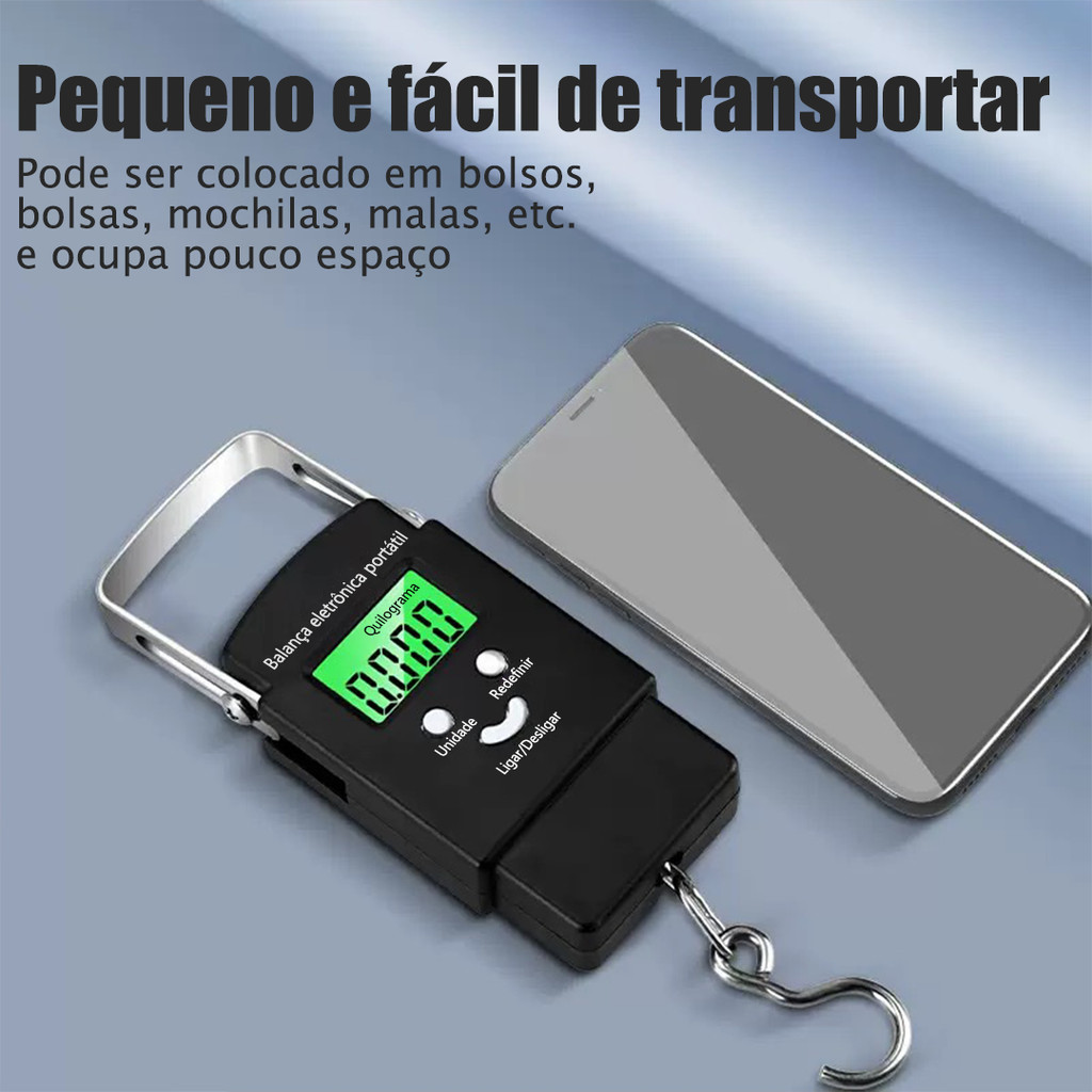Balança de Gancho Metal Portátil Digital Mão Bolsa Mala Peixe Até 50kg