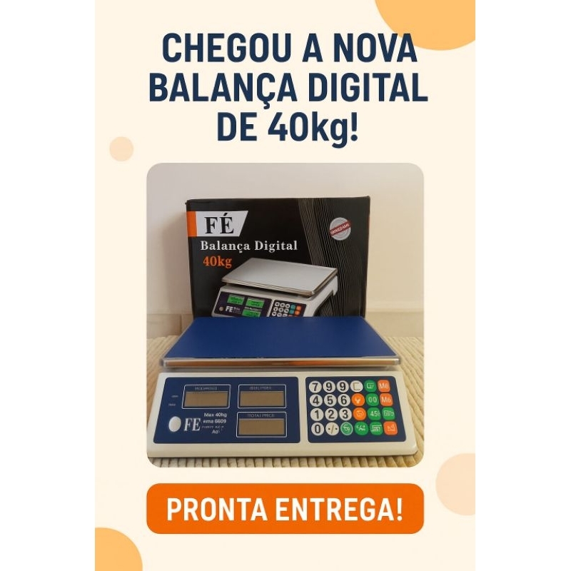 | Balança Digital Eletrônica Comercial P/ 40kg Precisão Mercado Lojas... | R$ 189,99 | 53% | 4.9/5 | 107 |