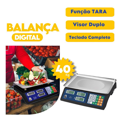 Balança Digital Comercial 40kg Compacta Alta Precisão 127/220v Branco