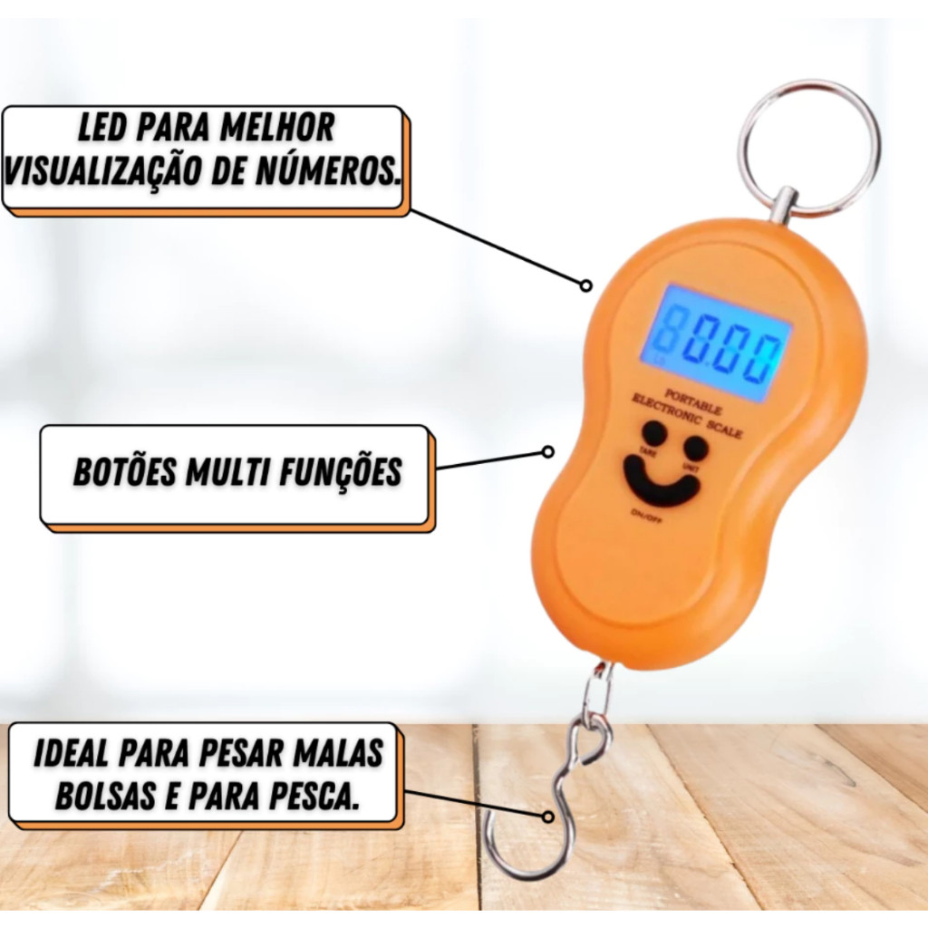 Balança Digital de Mão Bagagem Viagem Portátil Bolsa Mala Peixe Pesa até 50KG Visor Claro Noturno Itens Essenciais Viage