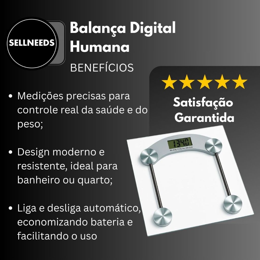 💎 Balança Digital de Vidro Temperado – Precisão e Estilo para Seu Bem-Estar Acompanhe sua saúde com a Balança Digital de Vidro Temperado, perfeita para quem busca controle de peso com tecnologia avançada e design moderno. 🔍 Principais Características: Alta Precisão: Sensores de última geração garantem medições exatas. Display Iluminado: Tela de LCD com números grandes para fácil leitura. Capacidade de até 180 kg: Ideal para uso doméstico, suportando diferentes perfis. Vidro Temperado: Plataforma resistente e segura, com design elegante. Funcionalidade Automática: Liga e desliga automaticamente, economizando energia. 🎯 Benefícios que Fazem a Diferença: Design Compacto: Fácil de armazenar e combinar com qualquer ambiente. Fácil Manutenção: Superfície lisa que facilita a limpeza diária. Multifunções: Permite alternar entre unidades de medida (kg, lb, st). Ideal para Toda a Família: Atende às necessidades de diferentes usuários. 🛒 Por que Escolher Nossa Balança Digital? Se você procura por uma balança digital de banheiro, balança de vidro temperado ou balança digital com alta precisão, esta é a escolha certa. Combinando tecnologia de ponta e estilo sofisticado, ela se destaca entre as balanças digitais mais vendidas no mercado. Invista em sua saúde e bem-estar com a nossa Balança Digital de Vidro Temperado. Adquira agora e experimente a combinação perfeita de funcionalidade, design e precisão.
