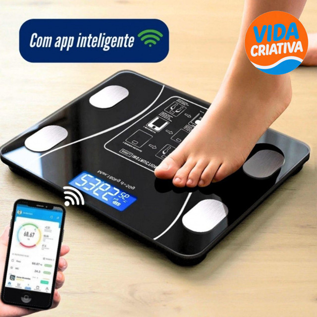 Balança Digital Inteligente Corporal com Bioimpedância e Aplicativo Alcance seus objetivos de saúde com praticidade e tecnologia! A Balança Digital com Bioimpedância é perfeita para quem busca monitorar a saúde e o bem-estar no dia a dia. Além de medir o peso corporal, ela oferece dados completos como IMC, percentual de gordura, massa muscular, massa óssea, percentual de água e metabolismo basal — tudo isso de forma fácil e acessível através do aplicativo conectado via Bluetooth. Acompanhe sua evolução com gráficos e histórico detalhado, diretamente no app. Ideal para uso individual ou familiar, já que armazena os dados de até 8 usuários. Principais Características: Suporta até 180 kg Dados em tempo real via Bluetooth 4.0 Compatível com Android 4.4+ e iOS 7.0+ Alimentação por 2 pilhas AAA Display LCD digital de 4 dígitos Sistema de sensores de alta precisão Ligações automáticas (liga/desliga) Mede: peso, IMC, gordura corporal, água, metabolismo basal, massa óssea e muscular Unidades de medida: kg / lb Armazena dados de até 8 usuários no aplicativo Aviso de sobrecarga e indicador de bateria fraca Aplicativo OKOK Internacional Dimensões: 26 x 26 cm