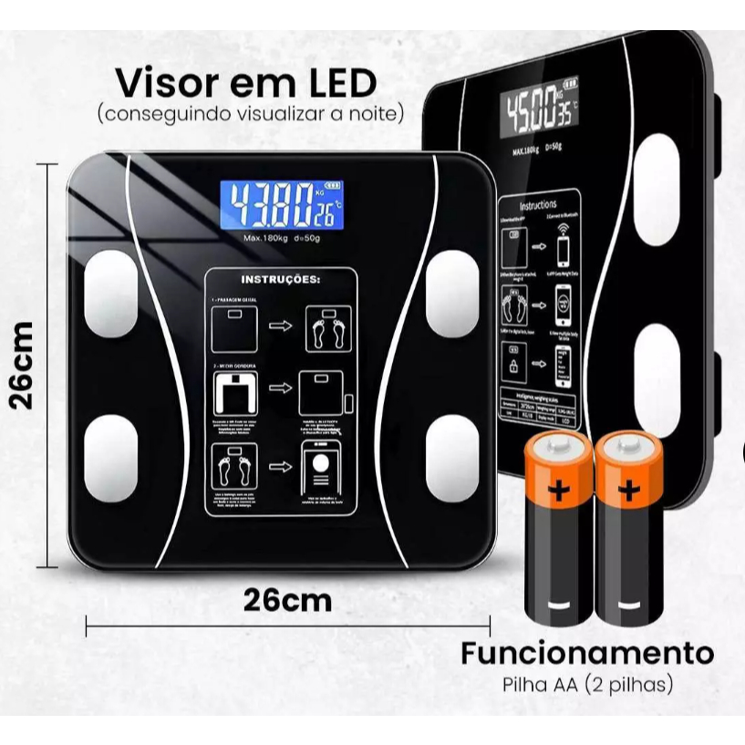 | Balança Digital Inteligente Bioimpedância Alta Precisão 140kg Preta... | R$ 42,90 | 26% | 4.9/5 | 15 |