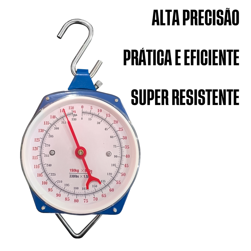 Balança Manual De Gancho Peixeira Analógica 150KG Suspensa Mecânica Açougue Feira Pesagem Campo