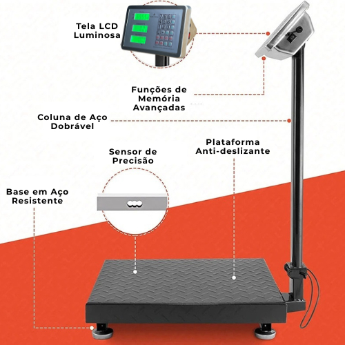 Balança Plataforma 180kg com Mastro Bivolt Digital