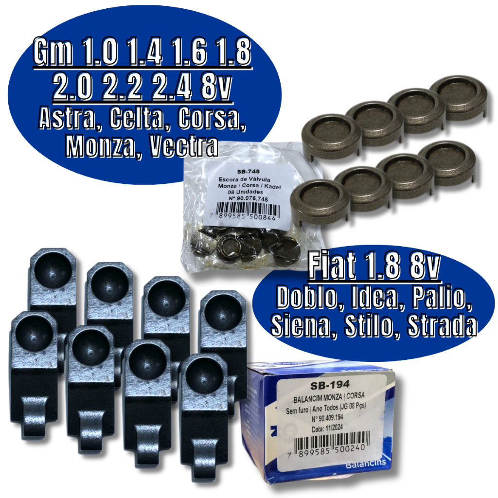 Balancim e Escoras Gm Corsa Novo De 2002 a 2006 Não Roletado Sambel *** Não nos responsabilizamos pela má instalação do produto. *** Recomendamos que a instalação seja feita por um profissional especializado ITENS INCLUSOS: 1 jogo 8un escoras 1 jogo 8un balancim *** Para motores Gm E Fiat Modelo Balancim NÃO Roletado MARCA: SAMBEL VEÍCULOS COMPATÍVEIS: GM CHEVROLET 1.0 1.4 1.6 1.8 2.0 2.2 2.4 8V / FIAT 1.8 8V CHEVROLET: CHEVROLET - GM ASTRA 1.8 L 8V (1995 - 1996) CHEVROLET - GM ASTRA 2.0 L 8V (1997 - 2011) CHEVROLET - GM BLAZER 2.2 L 8V (1996 - 2000) CHEVROLET - GM BLAZER 2.4 L 8V (2001 - 2007) CHEVROLET - GM CELTA 1.0 L 8V (2001 - 2006) CHEVROLET - GM CLASSIC 1.0 L 8V (2003 - 2008) CHEVROLET - GM CORSA 1.0 L 8V (1996 - 2005) CHEVROLET - GM CORSA 1.4 L 8V (1996 - 2005) CHEVROLET - GM CORSA 1.6 L 8V (1995 - 2006) CHEVROLET - GM CORSA 1.8 L (2006 em diante) CHEVROLET - GM CORSA PICK-UP 1.4 L 8V (1995 - 2004) CHEVROLET - GM IPANEMA 1.8 L 8V (1987 - 1998) CHEVROLET - GM IPANEMA 2.0 L 8V (1987 - 1998) CHEVROLET - GM KADETT 1.8 L 8V (1987 - 1998) CHEVROLET - GM KADETT 2.0 L 8V (1987 - 1998) CHEVROLET - GM MERIVA 1.8 L 8V (2001 - 2005) CHEVROLET - GM MONZA 1.6 L 8V (1982 - 1996) CHEVROLET - GM MONZA 1.8 L 8V (1982 - 1996) CHEVROLET - GM MONZA 2.0 L 8V (1982 - 1996) CHEVROLET - GM OMEGA 2.0 L 8V (1993 - 1997) CHEVROLET - GM OMEGA 2.2 L 8V (1993 - 1997) CHEVROLET - GM S10 2.2 L 8V (1996 - 1999) CHEVROLET - GM S10 2.4 L 8V (2001 - 2007) CHEVROLET - GM SUPREMA 2.0 L 8V (1993 - 1998) CHEVROLET - GM SUPREMA 2.2 L 8V (1993 - 1998) CHEVROLET - GM VECTRA 2.0 L 8V (1997 - 2011) CHEVROLET - GM ZAFIRA 2.0 L 8V (2001 - 2012) FIAT: FIAT DOBLO 1.8 L 8V (2004 - 2006) FIAT IDEA 1.8 L 8V (2005 - 2010) FIAT PALIO 1.8 L 8V (2003 - 2007) FIAT PALIO WEEKEND 1.8 L 8V (2003 - 2006) FIAT SIENA 1.8 L 8V (2003 - 2008) FIAT STILO 1.8 L 8V (2003 - 2011) FIAT STRADA 1.8 L 8V (2003 - 2008)