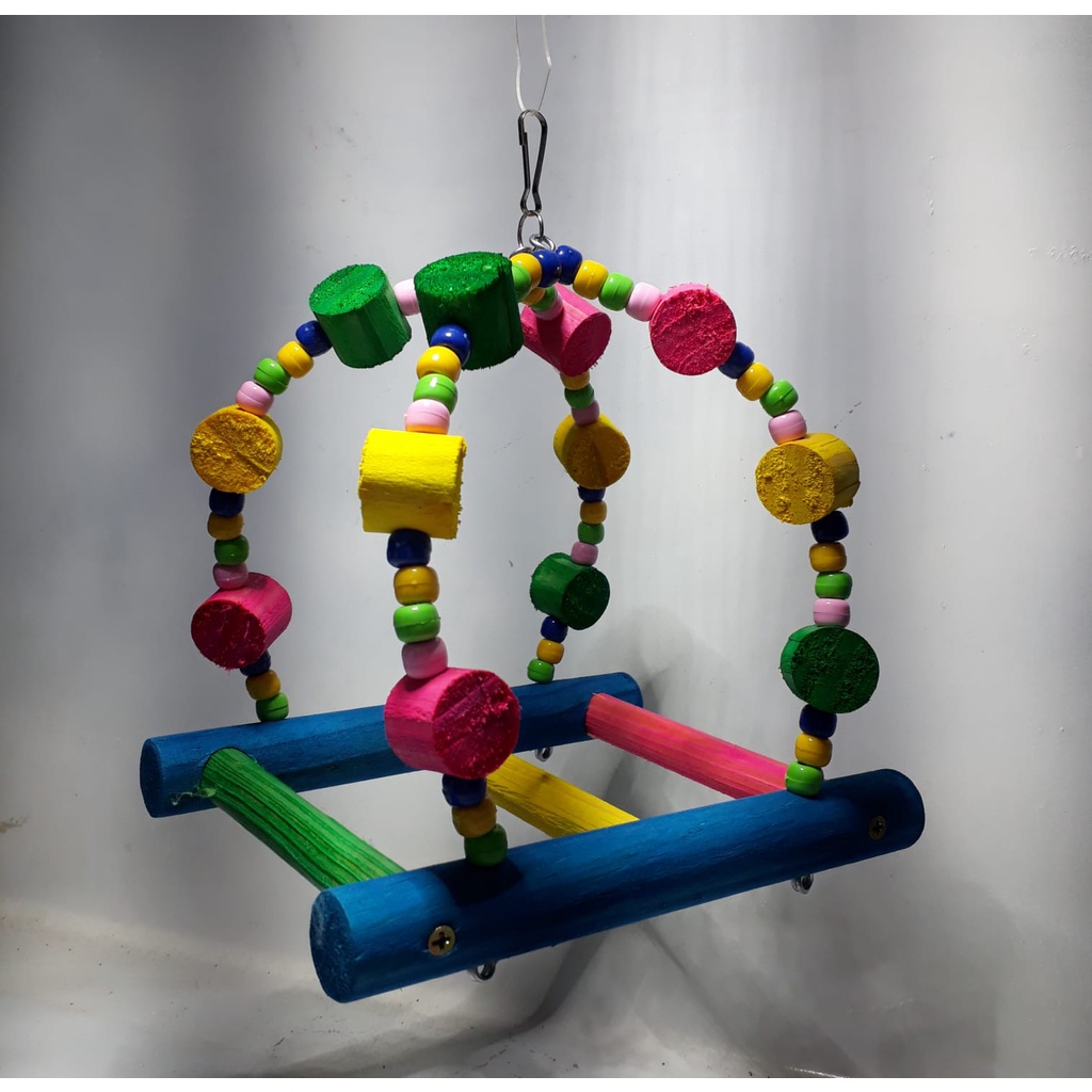 Balanço Escada para Calopsita e Outros Pássaros. Produto feito com poleiro de pinus, arame e miçangas. Pintura com corante alimentício. Dimensões- L18 x C14 x A18cm Cores Sortidas!!