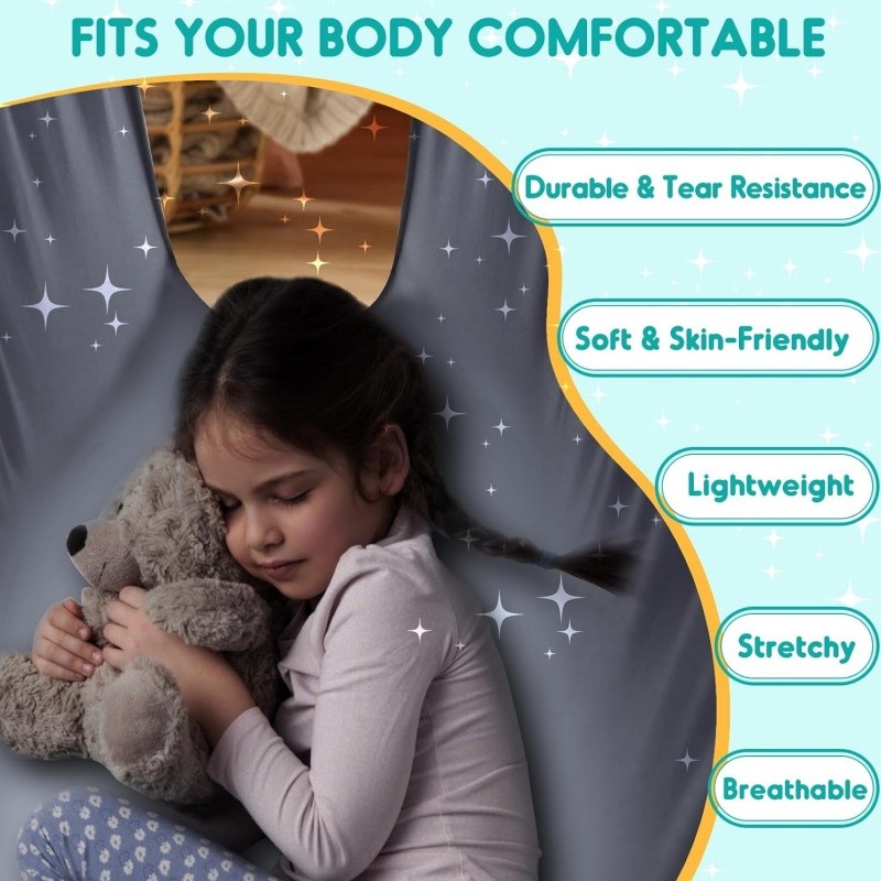 Características do produto: Divertido, terapêutico e confortável. Este balanço resistente e reforçado ajuda as crianças a manterem-se calmas e coordenadas, proporcionando pressão tátil profunda e estimulação vestibular. O balanço também promove a flexão postural. É ideal para crianças com necessidades especiais. A rede robusta proporciona uma entrada proprioceptiva (sensorial profunda) relaxante. O design suspenso estimula o equilíbrio e a coordenação do sistema vestibular. Durável e fácil de cuidar. O tecido de nylon de alta qualidade torna o balanço resistente a rasgos e adequado para todas as condições climáticas, estável e seguro, criando um cantinho divertido para o seu filho sem o risco de a barra do balanço se soltar. Possui também anéis reforçados não elásticos e fechos de aço inoxidável. Alta capacidade de carga, até 200 kg. Fácil de limpar; lavável na máquina, mas use detergente neutro. Design ergonômico. O tecido tem 2,8 metros de comprimento e 1,5 metros de largura, adequado para crianças ou adultos de menor estatura. Seu design elástico permite que se ajuste às curvas do corpo sem causar desconforto ou aperto, tornando-o ideal para brincadeiras relaxantes das crianças. Recomenda-se colocá-lo a 30-40 cm do chão. Pode ajudar as crianças a escalar, balançar suavemente ou ser usado para supervisionar sua segurança. O tecido possui costura invisível para reduzir o desgaste por atrito ou por ser pisado. Leve e portátil, ocupa muito pouco espaço. Quando pendurado, seu peso leve e belo caimento praticamente não ocupam espaço. Ao guardar, o material de nylon fácil de manusear o torna compacto e resistente a amassados. Você pode usar as fivelas de aço inoxidável para criar um cantinho aconchegante para seu filho relaxar no quarto. Também pode ser levado para fora e facilmente pendurado em galhos resistentes usando as tiras reforçadas inclusas. Os anéis de suspensão vêm com mosquetões, tornando a instalação, a remoção e a fixação muito convenientes; todo o processo de montagem leva menos de um minuto. Cor: Disponível em várias cores Material: Nylon Capacidade máxima de carga: 200 kg Peso: 950 g Conteúdo da embalagem: Tecido elástico *1 Placa de fixação *1 (com parafusos) Corda de conexão *1 Anel de ligação *1 Alça de extensão dupla *1 Observação: Para as cores Azul Royal, Roxo Escuro, Preto, Azul Celeste, Cinza Prateado, Dourado, Rosa e estampas, o tecido de nylon de 1,5 m de largura e o tecido de poliéster de 1,5 m de largura possuem elasticidade horizontal. Todas as outras cores utilizam tecido com elasticidade reta. Todas as redes de 1 m de largura utilizam tecido com elasticidade reta!