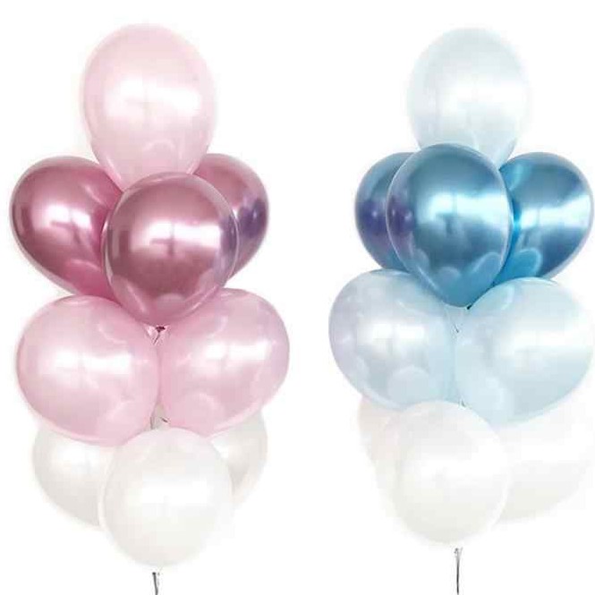 Balão 5 Pol 25 Pink Cromado+ 25 Azul Metalizado Chá Revelação Bebe