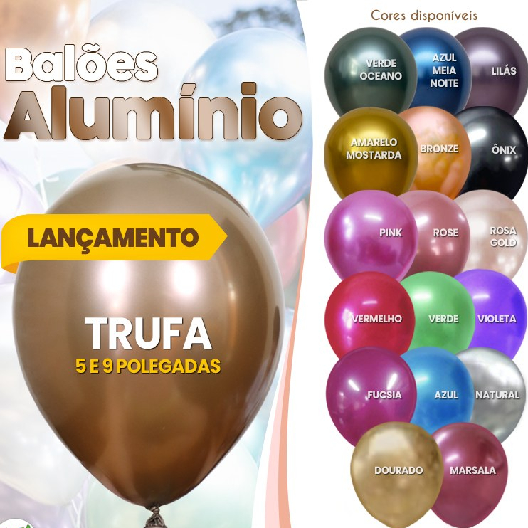 Balão 9 Polegadas Metálico Aluminio 25 Unidades Látex