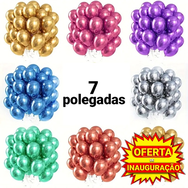 | Balão Bexiga Metalizado 7 Polegadas Diversas Cores Balao Premium Re... este produto | R$ 19,00 | 53% | 4.7/5 | 52 |