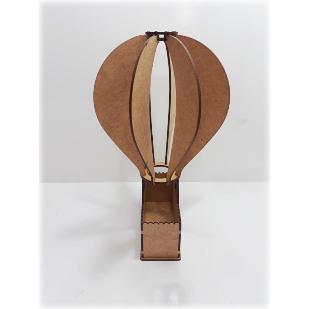 Balão Cachepô em MDF cru de 3 mm Corte Laser Medidas (montado) Altura: 30 cm Largura : 17 cm profundidade 17 cm *Cestinha largura: 13,5 cm altura: 7 cm Profundidade: 5,5 cm O produto é enviado desmontado!!! É necessário uso de cola branca tipo escolar ou cola para madeira, que não acompanha o produto.
