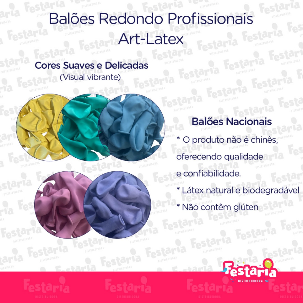 BALÃO REDONDO PROFISSIONAL LATEX CANDY - DIVERSAS CORES - 9” - 25 UNIDADES - ART LATEX São de Excelente Qualidade !!! Os principais diferenciais dos Balões Art-Látex são: Qualidade, Brilho, Durabilidade, Variedade de formatos e facilidade de criação de estruturas, estão entre os melhores e são um sucesso no Mercado Brasileiro, além de ser uma das preferidas entre as(os) Decoradoras(es) de Balão. Os Balões Art-Látex vão deixar sua Decoração de Festa incrível. Características: Material Látex. Os balões são vendidos vazios. Pode ser inflado com Gás Hélio (Para Flutuar) ou com Bomba para Balões/Compressor de Ar (Para Não Flutuar); Medidas:9''; Quantidade: Pacote com 25 unidades.