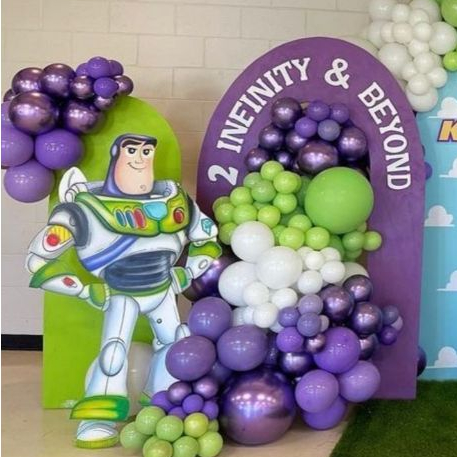 Balão de aniversário Buzz Lightyear 151 balões -Roxo + Branco + Verde Lima para decoração de Festas.