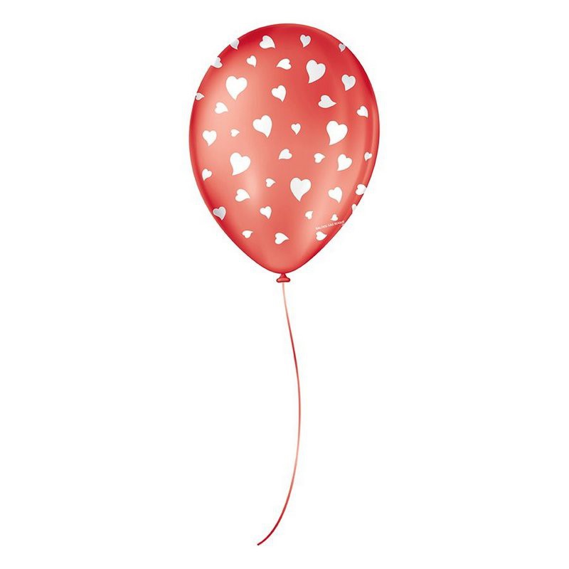 Balão de Festa Decorado Coração - Vermelho 9" 23cm - 25 Unidades - São Roque - Rizzo Balões