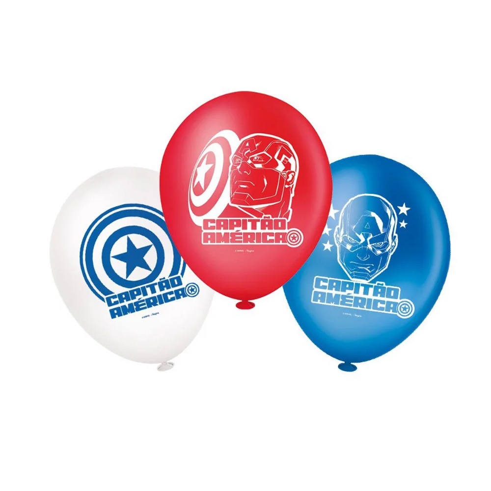 Balão Latex Redondo 9 Polegadas Festa Capitão America - 25 Unidades - Regina Festas - Rizzo