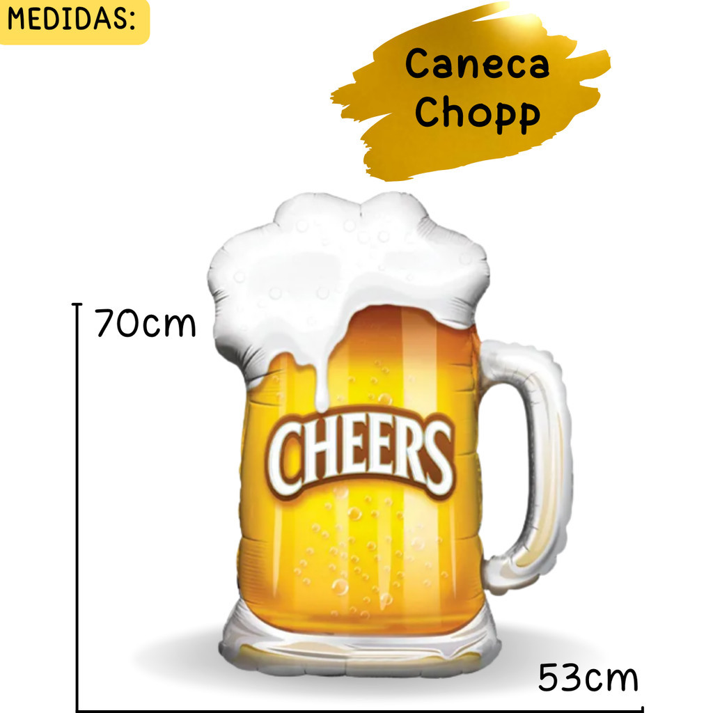 Balão Metalizado Caneca Chopp 70cm + 4 Balões Estrela Metalizadas 45 Cm - Decoração Boteco Festa Aniversário Eventos
