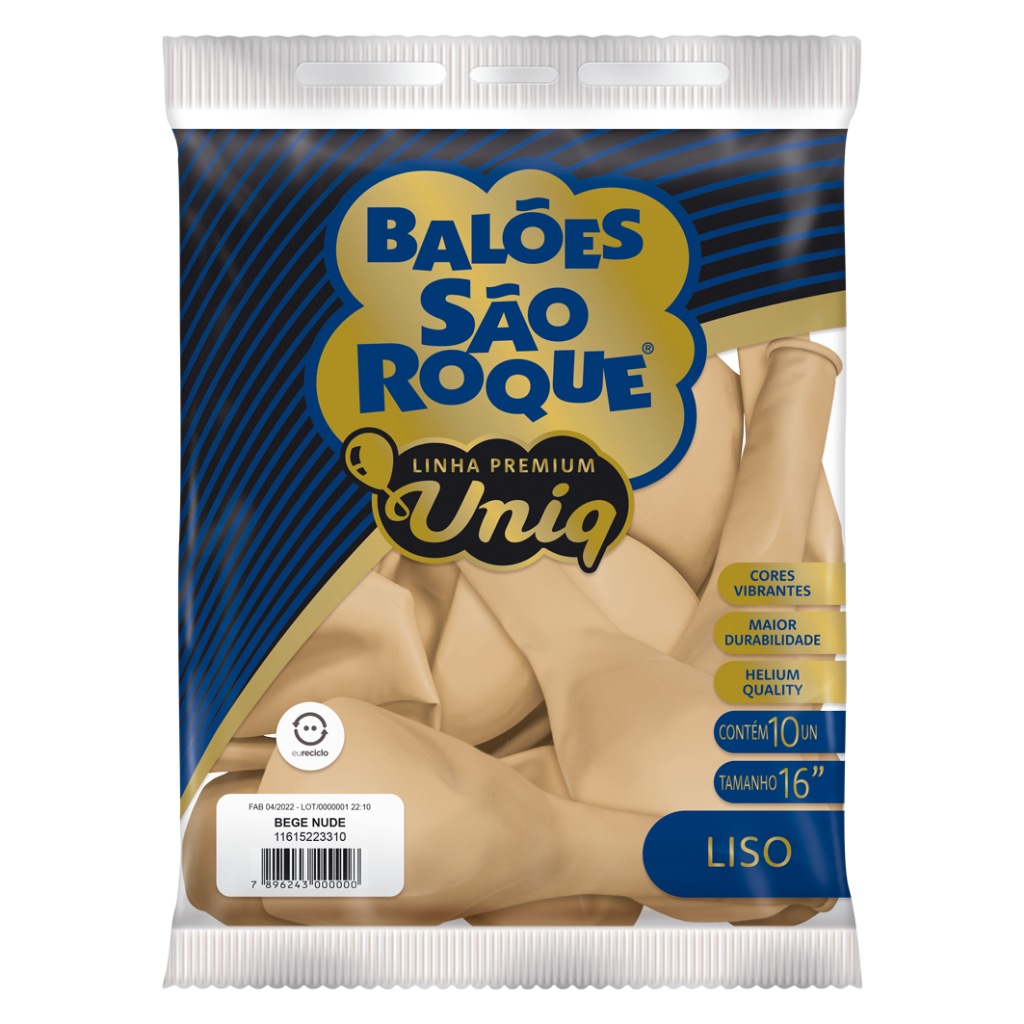 A linha Uniq da Balões São Roque é uma linha Premium, para atender desde os mais exigentes consumidores até os profissionais de arte com balões, apaixonados por balões grandes Com cores vibrantes, brilho intenso e a resistência que só a Balões São Roque tem, esta linha tem cores únicas, formato na medida certa, e com certeza vai te surpreender Embalagem 10 UNIDADES Tamanhos 16 POLEGADAS