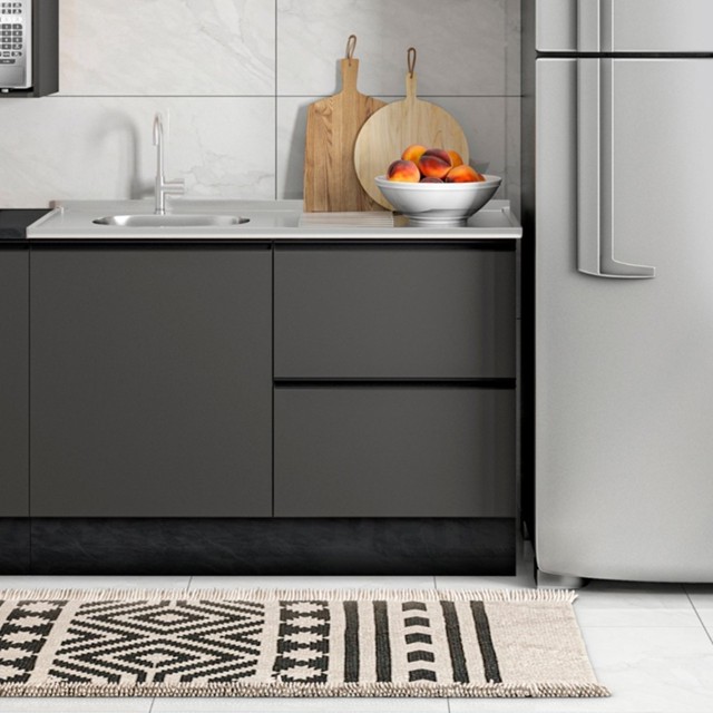O Balcão 1porta 3gavetas para pia sem tampo Etna da Poliman Móveis é um produto com toda praticidade e elegância para seu ambiente. Balcão flex (sem tampo) ideal para pia com cuba deslocada direita/esquerda que atendam a medida de 120cmx50cm. Possui 1porta de bater com dobradiças 35mm que possui a função slow motion, prateleira interna fixa, 02 gavetas aparentes e 01 gaveta embutida com porta talher incluso, com corrediças telescópicas, puxadores modelo perfil em polímero com acabamento em alta cobertura, pés em PVC 14,5cm reguláveis ao piso que permitem o nivelamento perfeito, também acompanha rodapés com presilhas modelo click que possibilitam a remoção dos mesmos. Produto em MDP com pintura UV acetinada, possibilitando melhores acabamento e resistência. Estilo: Moderno Modular: Não Peso (kg): 42.3 Garantia: 03 Meses Altura (cm): 84 Acabamento: Pintura UV Largura (cm): 120 Possui Pés: Sim Possui Portas: Sim Tipo de Porta: Bater Altura dos Pés: 14.5 Pés Reguláveis: Sim Possui Gavetas: Sim Possui Rodízio: Não Suporta Até (kg): 39 Acompanha Tampo: Não Profundidade (cm): 50 Suporta Granito: Sim Escala de Brilho: Fosco Gaveta com Chave: Não Material dos Pés: PVC Tipo de Base (pés): Pés Cesto para Frutas: Não Material da Porta: MDP Origem do Produto: Nacional Rodízio com Trava: Não Ambiente Principal: Cozinha Balcão Suporta Pia: Sim Material da Gaveta: MDP Material Principal: MDP Possui Prateleiras: Sim Acabamento da Porta: Pintura Sapatas Niveladoras: Não Acabamento da Gaveta: Pintura UV Balcão Acompanha Pia: Não Material da Corrediça: Metálica Material da Prateleira: MDP Peso Máximo por Gaveta: 2 Acabamento da Prateleira: Pintura UV Tipo de Puxador da Porta: Externo Escala de Brilho da Porta: Fosco Espessura da Estrutura (mm): 15 Tipo de Puxador da Gaveta: Externo Escala de Brilho da Gaveta: Fosco Peso Máximo por Prateleira: 5 Possui Recorte para Cooktop: Não Tipo de Corrediça da Gaveta: Metálica Telescópica Material do Puxador da Porta: Plástico Material do Puxador da Gaveta: Plástico Escala de Brilho da Prateleira: Fosco Informações Complementares (Novo): Balcão Flex para pia deslocada direita/esquerda, porta de bater, dobradiças resistentes de 35mm com a função slow motion, prateleira, 01 gaveta embutida com porta talher, gavetas com corrediças telescópicas, pés PVC reguláveis, rodapés removíveis com pre Tipo de Dobradiça/Corrediça da Porta: 35 mm Material da Dobradiça/Corrediça da Porta: Metálica Marca: Poliman Móveis Cor Interna: Grafite Cor do Produto: Grafite Itens Inclusos: 1 Balcão, 1 Kit Ferragens e 1 Manual de Montagem Cor Predominante: Cinza Quantidade de Prateleiras: 01 Prateleira Quantidade de Portas: 1 Porta Quantidade de Gavetas: 03 Gavetas Tamanho Indicado do Tampo (L x P): 120x50