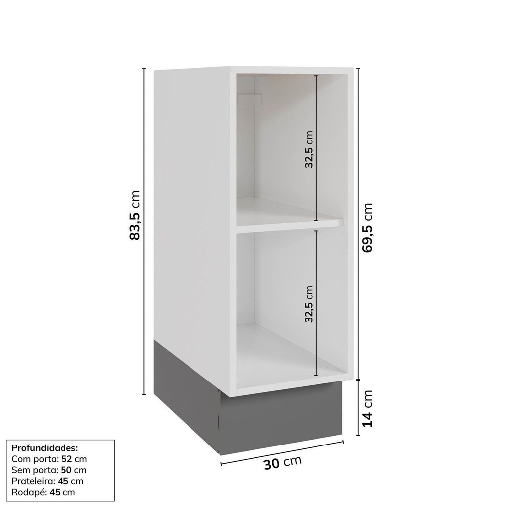Balcão 1 Porta 30cm sem Tampo Arizona CabeCasa MadeiraOriginals Cinza/Branco