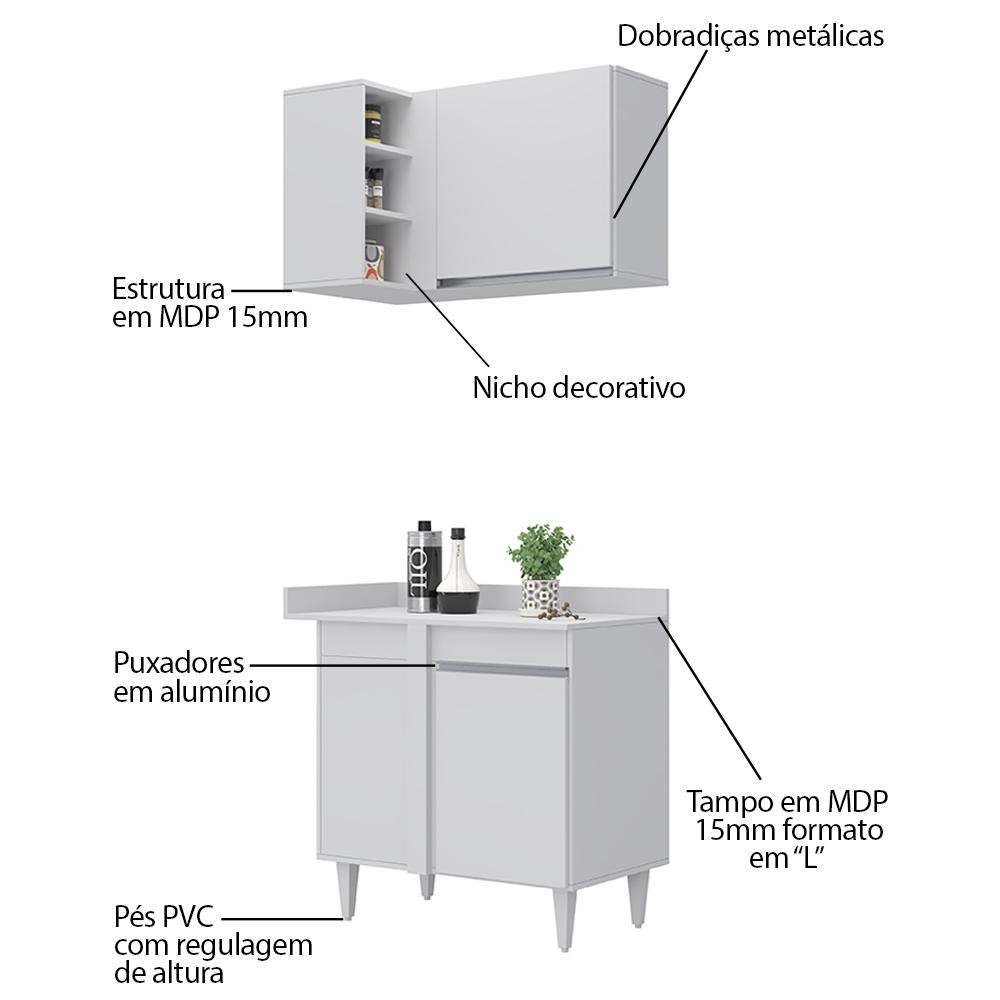 Balcão 1 Porta Denver e Armário Aéreo Austin de Canto Branco - Lumil