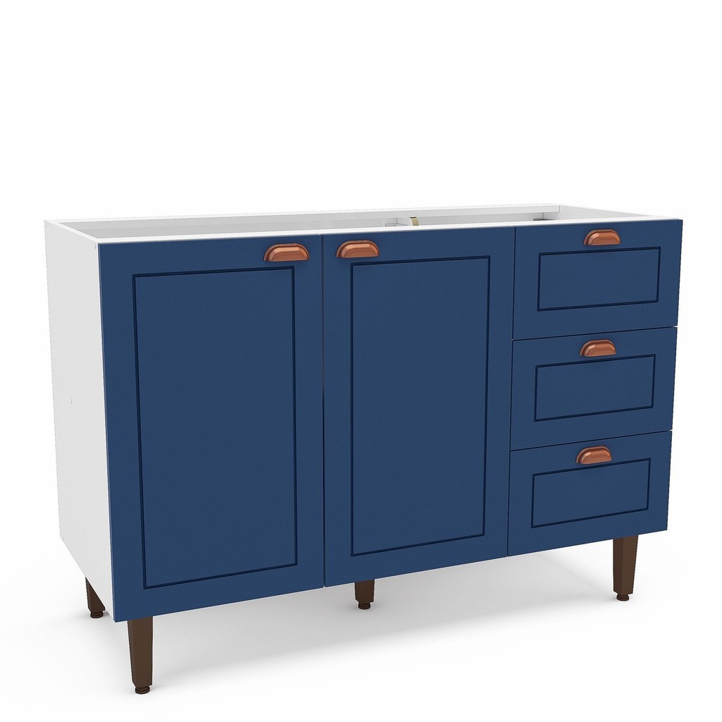 Balcão 2 Portas 3 Gavetas 120 Cm Pérola Yescasa Branco/Azul