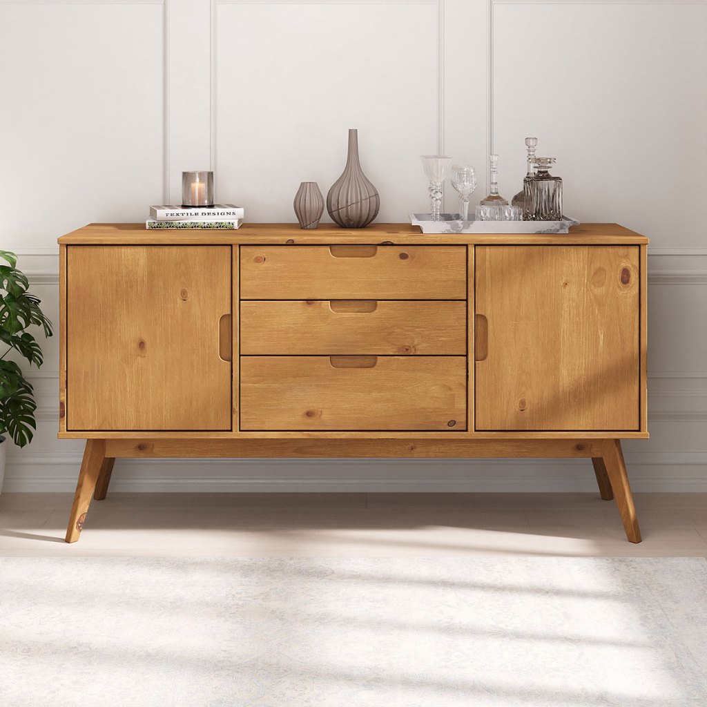 Ambiente sua casa com nossa linha Tivoli, produto sofisticado que vai deixar seu ambiente incrível. Um móvel sofisticado com design escandinavo criado no século XX. O Balcão Aparador 2 Portas 3 Gavetas Tivoli se destaca minimalismo com cores neutras para a sua Sala de Estar ou Sala de Jantar. Como diferencial o balcão aparador possui 2 portas e 3 gavetas bem distribuídas para organizar seus objetos e possui uma prateleira na parte interna de cada porta para aumentar o espaço de organização, possui puxadores em cava, agregando simplicidade no produto. O Balcão Aparador 2 Portas 3 Gavetas Tivoli é de Madeira Maciça reflorestada, mais resistente que MDF. Pensamos também na saúde de sua família utilizando pinturas livre de solventes e sem formaldeído. Assim seu móvel cuida da saúde da sua família. Confira já este Móvel incrível! Dimensões do Produto: Largura: 145 cm Altura: 75 cm Profundidade: 45 cm Peso: 34 Kg Dimensões das Gavetas Superior e Meio: Largura: 51 cm Altura: 13 cm Profundidade: 34 cm Dimensões da Gaveta Inferior: Largura: 51 cm Altura: 18 cm Profundidade: 34 cm Dimensões Atrás das Portas: Largura: 41 cm Altura: 46 cm Profundidade: 42 cm Materiais e Acabamento: Material da Estrutura: Madeira Maciça Tipo da Madeira: Pinus Material de Fundo: MDF CARB Fundos das Gavetas: MDF CARB Escala de Brilho Santiago: Fosco Acabamento: Cera Material dos Pés: Pinus Maciço Recomendação de Limpeza: Utilize pano levemente úmido Características do Produto: Quantidade de Prateleiras: 2 Quantidade de Portas: 2 Quantidade de Gavetas: 3 Possui Rodízio: Não Possui Gavetas: Sim Estilo: Escandinavo Tipos de Corrediças: Metálica Tipo de Dobradiças: Metálica Tipo de Puxador Gaveta: Cava Ambiente Principal: Sala de Estar ou Sala de Jantar Peças: Podendo conter madeira de finger em sua composição Precisa de Montagem: Sim Sistema de Montagem: Minifix / Cavilhas / Parafusos. Complexidade da Montagem: Médio Volumes: 02 Garantia do Fabricante: 12 meses Montagem: Recomendamos que seja feita por um profissional. Manual de Montagem: Sim Diferenciais: - Produto Versátil - Design Moderno/Rústico - Madeira Maciça - Mais Resistente que MDF - Móvel Sustentável - Madeira Certificada - Pintura Livre de Solventes - MDF Livre de Formaldeído - Produto Qualidade Europeia Madeira Maciça: Nossa madeira é proveniente de recursos naturais e é tratada de forma ecologicamente correta para o bem do meio ambiente. Sua resistência e vida útil é superior a móveis de chapa MDF utilizadas pelo mercado. Nossa madeira possui mais resistência ao desgaste natural do tempo, agregando mais durabilidade ao seu produto. Pensando na qualidade dos produtos, possuímos equipes de controle de qualidade para selecionar madeiras ideais para seu produto. Informações Importantes: - Montagem não inclusa ao produto. - Não nos responsabilizamos, no ato da entrega, por subir escadas/elevadores ou transporte por guincho em apartamentos. Eventuais despesas são de responsabilidade do comprador. - Ao receber a mercadoria, o cliente deve verificar as condições da embalagem, caso haja alguma avaria não assine o comprovante de recebimento. - Objetos que ambientam as fotos não acompanham o produto. - Imagens meramente ilustrativas. Cores e tonalidades podem variar. - O conjunto não pode ficar exposto ao Sol ou Chuva.