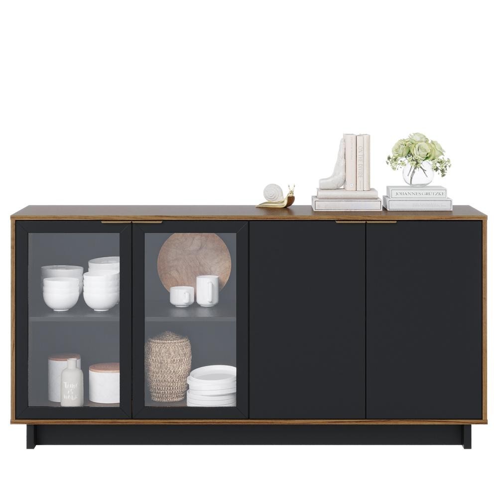 Balcão Aparador Buffet Vicky C05 Noce Milano/Preto Fosco - Mpozenato