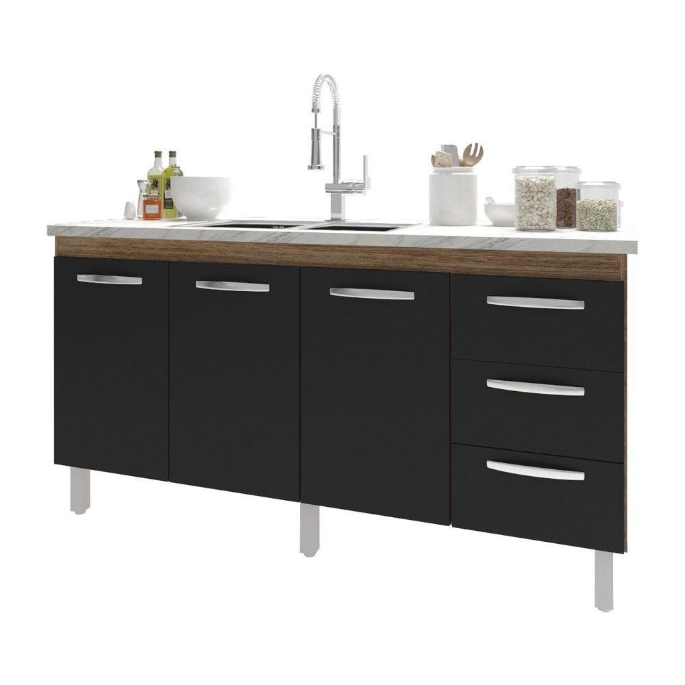 Balcão Armário Cozinha Gabinete Para Pia 148 Cm 3 Gavetas E 3 Portas Deise Savana Preto