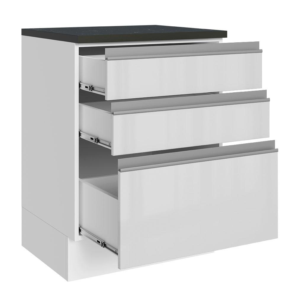 Balcão Armário de Cozinha 100% MDF 60 cm 3 Gavetas Frentes Branco Brilho Acordes Madesa