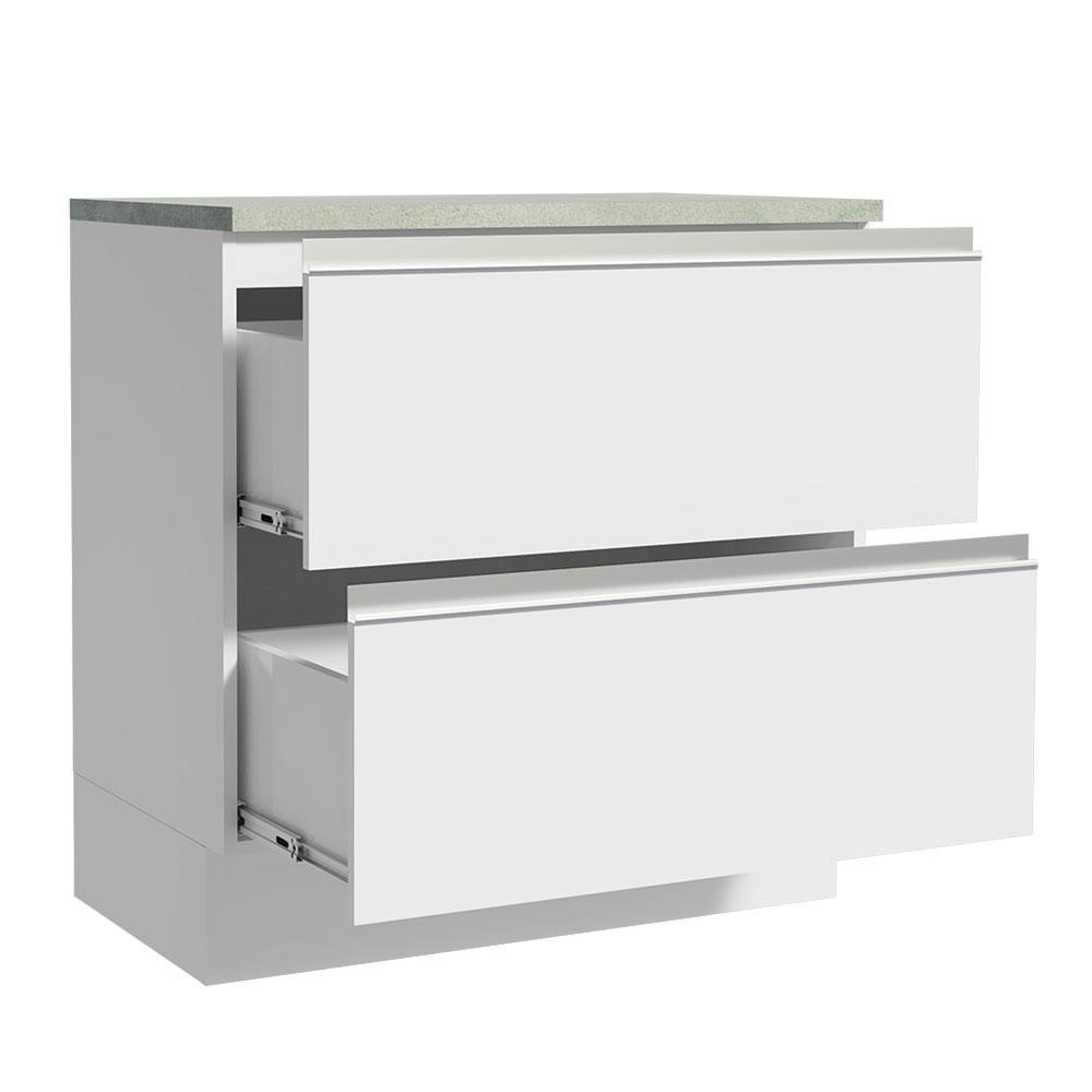 Balcão Armário de Cozinha 80 cm 2 Gavetas Branco Glamy Madesa