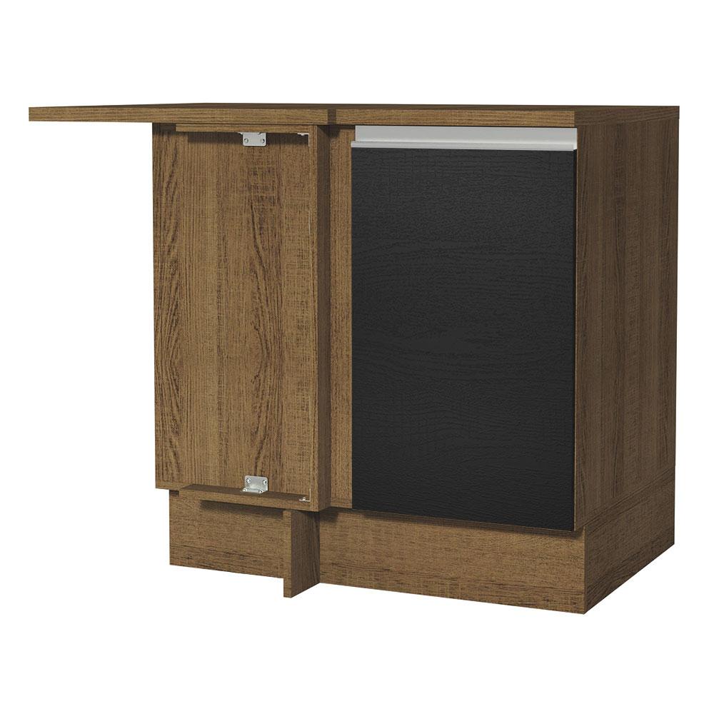 Balcão Armário de Cozinha de Canto 1 Porta Rustic/Preto Glamy Madesa