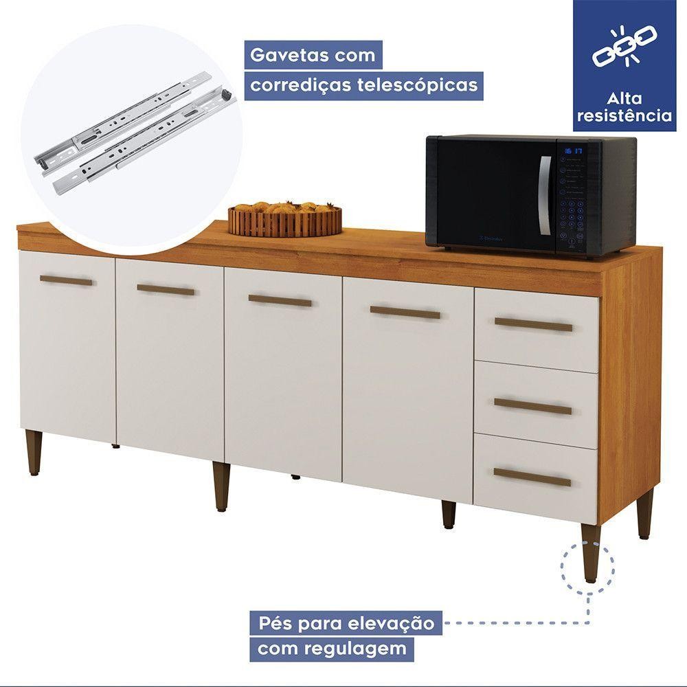 Balcão Atenas 4 Portas E 3 Gavetas Naturalle Com Off White