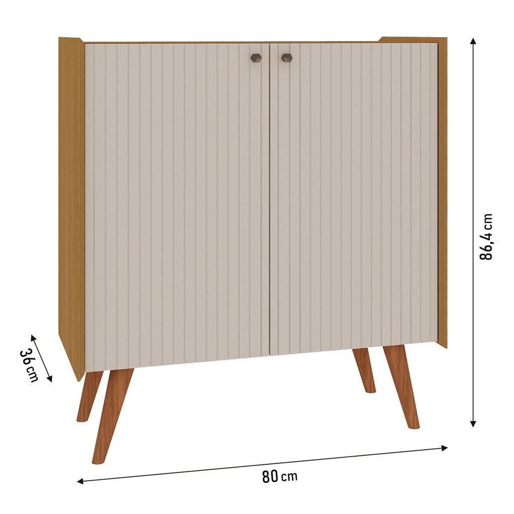 - 100% MDF 15 mm - Pés em madeira maciça - Puxadores ABS tom de cor champanhe (feito de plástico super resistente e leve, muito utilizado em móveis do dia a dia) - Dobradiças metálicas - Caixa e interno no padrão Cinamomo - Portas na cor White Laca (branco brilho) com acabamento frisado (frisos feitos direto na madeira MDF, formando linhas contínuas que trazem relevo/profundidade e um visual bem mais interessante para a porta. - Laterais com design angular em 45 graus - 1 prateleira interna em MDF 15 mm - Fundo em 3 mm padrão Cinamomo - Pintura UV Transforme seu ambiente com esse aparador que é puro charme e funcionalidade: design moderno com portas frisadas, combinação elegante de branco com madeira, pés retrô que dão aquele toque escandinavo e um espaço interno perfeito pra organizar louças, bebidas, objetos decorativos ou o que você quiser, tudo isso num tamanho ideal que se encaixa fácil na sala de jantar, estar ou até no hall de entrada. É aquele móvel que muda o clima do espaço na hora, deixa a casa mais aconchegante, organizada e cheia de personalidade, além de ser super versátil pra usar como buffet, barzinho ou apoio decorativo. Resumindo: bonito, prático e com cara de casa bem cuidada, do jeitinho que a gente ama, feito pra fazer parte da sua rotina e das histórias da sua casa. A Genialflex cria móveis pensados para a vida real: a rotina, os hábitos e os momentos de pausa. Peças modernas, resistentes e fáceis de combinar, que unem praticidade, conforto e estilo para transformar cada ambiente em um lugar onde é bom viver todos os dias. MEDIDAS DO APARADOR - Largura: 80 cm - Altura: 157 cm - Profundidade: 36 cm PESO SUPORTADO - Prateleiras até 8 kg - Base inferior até 15 kg INSTRUÇÕES DE MONTAGEM O produto acompanha kit de ferragens e manual de montagem (serviço de montagem não incluso). CONTÉM NA EMBALAGEM O produto é enviado desmontado em 2 volumes, devidamente protegidos com papelão, isopor e plástico termoencolhível. TIPO DE FIXAÇÃO A fixação é feita com girofix, cavilhas e parafusos (não é necessário fixar na parede). DÚVIDAS COMUNS O produto é entregue montado? Não, os móveis são enviados desmontados, com um manual e todos os componentes necessários para a montagem. Vocês oferecem serviço de montagem? Não oferecemos serviço de montagem. Qual é o valor da entrega? O valor da entrega é calculado de acordo com o CEP de destino. Os produtos são novos? Sim, todos os nossos produtos são novos. Vocês entregam em todo o Brasil? Sim, realizamos entregas para todo o território nacional. LIMPEZA Para a limpeza, use um pano levemente umedecido com água. Evite produtos abrasivos e esponjas de aço. GARANTIA Cobertura de 3 meses contra defeitos de fabricação. CONSIDERAÇÕES IMPORTANTES - Durante a montagem, as peças devem ser montadas com a parte de trás voltada para cima, apoiando o móvel sobre o papelão da embalagem para evitar danos. - Evite o contato com fontes de calor ou umidade. - As imagens são meramente ilustrativas e os objetos decorativos não estão inclusos. - As cores podem variar dependendo da configuração da tela do dispositivo. - A entrega será realizada até a porta de entrada ou portaria do endereço informado. Caso autorizado pela portaria, o produto será deixado no andar térreo. O transporte até o interior do imóvel é responsabilidade do cliente.
