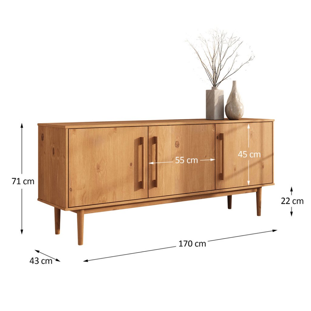 A escolha ideal para quem valoriza organização ampla, estética contínua e visual minimalista. O Balcão Buffet Aparador em Madeira Maciça Minimalista Tecca com 3 portas foi criado para ambientes que pedem mais espaço interno e menos divisão aparente. Com 170 cm de largura, oferece compartimentos generosos e versáteis, permitindo armazenar tudo em um único móvel, sem quebra visual. Seus três vãos internos abrigam louças, utensílios ou itens maiores com facilidade, aproveitando a profundidade total do móvel. É a opção perfeita para quem prefere empilhar, organizar em caixas ou dispor objetos com liberdade, sem interrupções de trilhos ou divisões verticais. O design autêntico com puxadores esculpidos na própria madeira reforça a proposta limpa da linha. A frente contínua com 3 portas traz elegância discreta, enquanto os pés cônicos retos elevam o conjunto com leveza. Para quem busca uma peça única, funcional e com forte presença, o Balcão 3 Portas da Linha Tecca é a solução: menos fragmentação, mais espaço e muito estilo. Disponível nas cores Freijó, Castanho e Imbuia. Dimensões do Produto Largura: 170 cm Altura: 71 cm Profundidade: 40,5 cm Peso: 35 Kg Materiais e Acabamento Material da Estrutura: Madeira Maciça - Finger Tipo da Madeira: Pinus Escala de Brilho: Fosco Material dos Pés: Pinus Maciço Recomendação de Limpeza: Utilize pano levemente úmido Características do Produto Quantidade de Portas: 3 Quantidade de Gavetas: 0 Quantidade de Basculantes: 0 Possui Rodízio: Não Possui Gavetas: Não Quantidade de Prateleiras: 04 Ambiente Principal: Sala/Hall de Entrada Precisa de Montagem: Sim Sistema de Montagem: Minifix / Cavilhas / Parafusos Complexidade da Montagem: Médio Volumes: 02 Garantia do Fabricante: 12 meses Montagem: Recomendamos que seja feita por um profissional Manual de Montagem: Sim Diferenciais Produto Versátil Design Moderno/Rústico Madeira Maciça Mais Resistente que MDF Móvel Sustentável Madeira Certificada Pintura Livre de Solventes Produto Qualidade Europeia Informações Importantes Montagem e Desmontagem não inclusa ao produto, de responsabilidade do cliente. Não nos responsabilizamos, no ato da entrega, por subir escadas/elevadores ou transporte por guincho em apartamentos. Eventuais despesas são de responsabilidade do comprador. Ao receber a mercadoria, o cliente deve verificar as condições da embalagem, caso haja alguma avaria não assine o comprovante de recebimento. Objetos que ambientam as fotos não acompanham o produto. Imagens meramente ilustrativas. Cores e tonalidades podem variar. O conjunto não pode ficar exposto ao Sol ou Chuva.