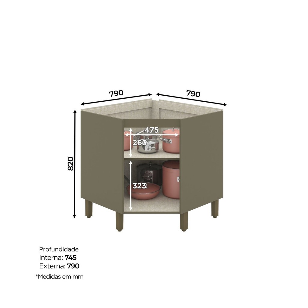 O Balcão Canto Oblíquo 1 Porta com Tampo MDF é a solução perfeita para a sua cozinha, com praticidade e beleza transforma o espaço dando um toque charmoso e elegante. Projetado para ser compacto e funcional, com materiais de altíssima qualidade e resistência garante segurança e durabilidade que sua cozinha merece. Estilo: Moderno Modular: Sim Peso (kg): 35 Garantia: 03 Meses Altura (cm): 82 Acabamento: Pintura Texturizada UV Largura (cm): 79 Possui Pés: Sim Possui Portas: Sim Tipo de Porta: Bater Altura dos Pés: 14.5 Possui Gavetas: Não Possui Rodízio: Não Suporta Até (kg): 16 Acompanha Tampo: Sim Profundidade (cm): 79 Suporta Granito: Sim Escala de Brilho: Fosco Material dos Pés: ABS Tipo de Base (pés): Pés Cesto para Frutas: Não Material da Porta: MDF Material do Tampo: MDF Origem do Produto: Nacional Ambiente Principal: Cozinha Balcão Suporta Pia: Não Material Principal: MDF Possui Prateleiras: Não Acabamento da Porta: Pintura Texturizada UV Sapatas Niveladoras: Não Balcão Acompanha Pia: Não Tipo de Puxador da Porta: Externo Escala de Brilho da Porta: Fosco Possui Recorte para Cooktop: Não Material do Puxador da Porta: Alumínio Material do Puxador da Gaveta: Alumínio Tipo de Dobradiça/Corrediça da Porta: Soft Close Material da Dobradiça/Corrediça da Porta: Metálica Marca: Espresso Móveis Cor Interna: Trama Cor: Duna/Cristal Cor do Produto: Duna/Cristal Itens Inclusos: 1 Balcão, Kit Ferragens, Manual de Montagem Cor Predominante: Bege Linha ou Coleção: Aurora Medida do Tampo (L x C x E): 78,5x78,5x2,5cm