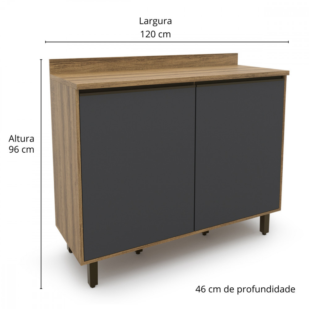 Balcao Confort 120cm 2 Portas Cinamomo/Grafite Batrol