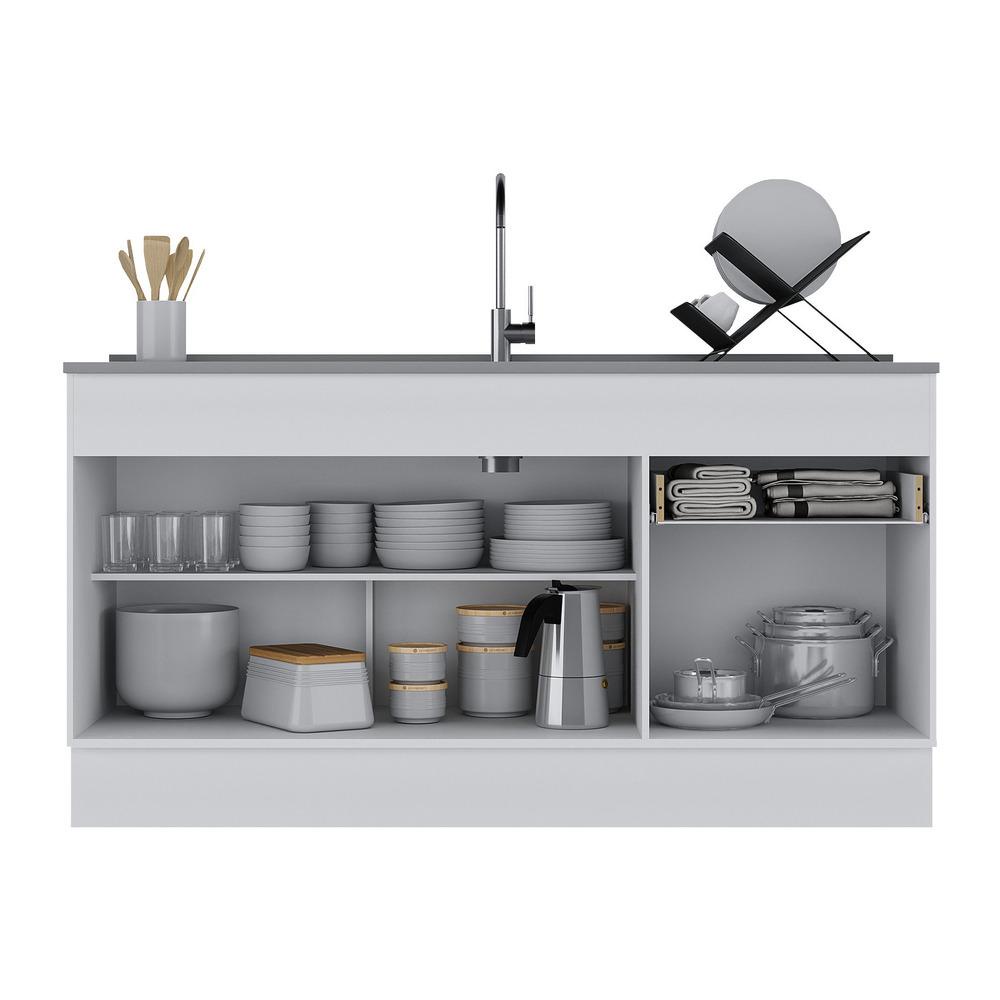 Balcão Cozinha com Rodapé Gabinete Pia 150 cm 3 Portas 1 Gaveta Veneza Multimóveis MP2115.891 Branco