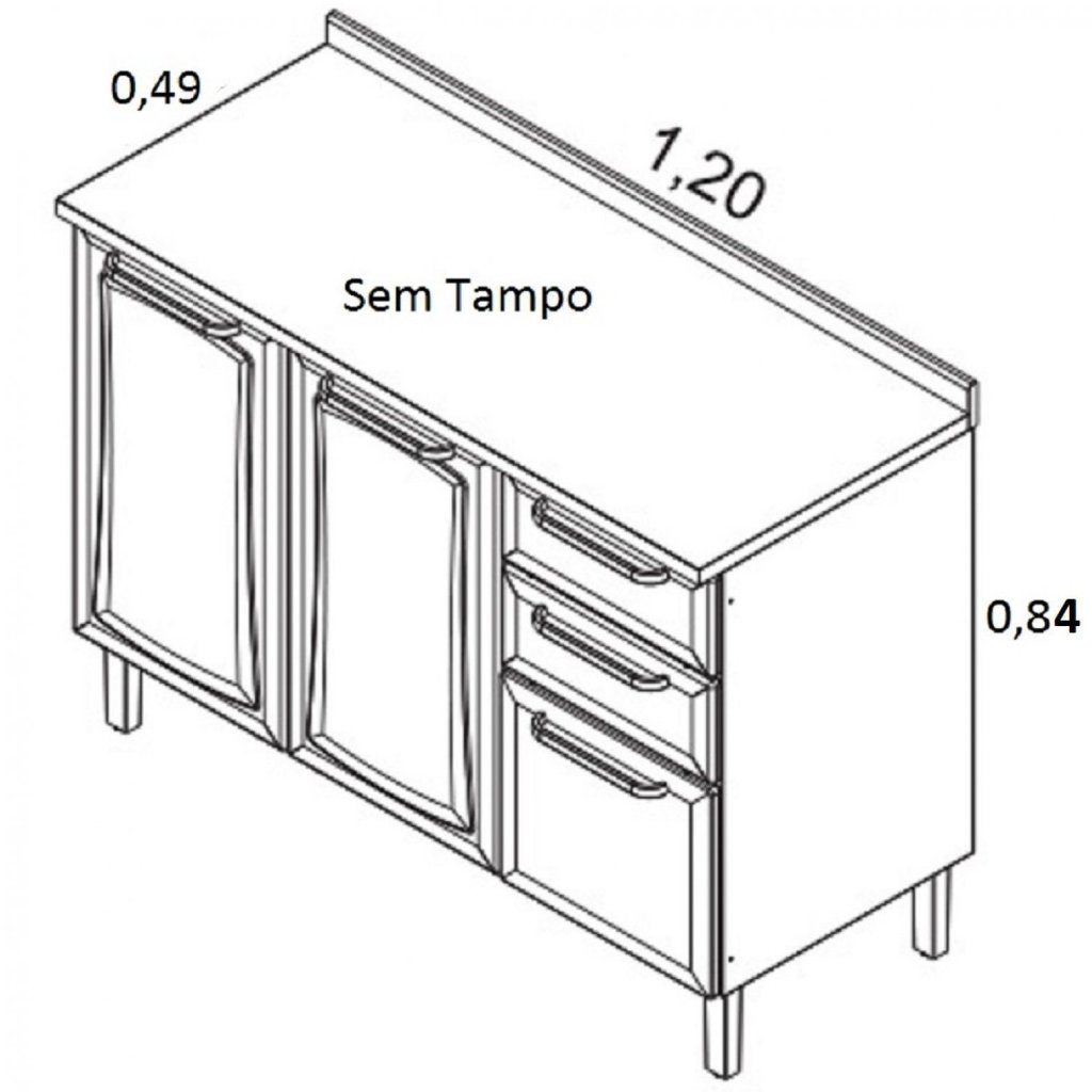 Balcão Cozinha em Aço 3 Portas 2 Gavetas 120cm sem tampo Dobradiças Slow Motion Tarsila Itatiaia Preto/Branco