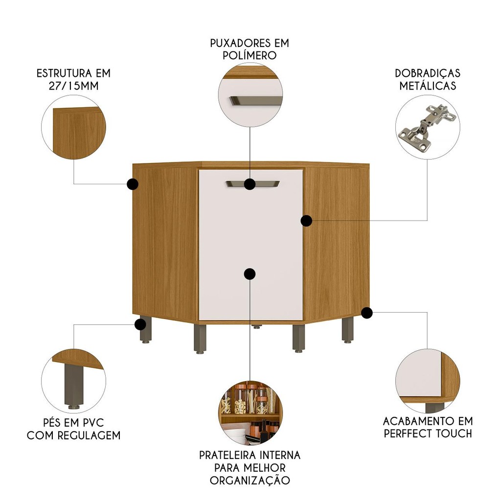 Balcão de Canto Oblíquo 80cm Rita Freijó/Off Acetinado Z44 - Mpozenato