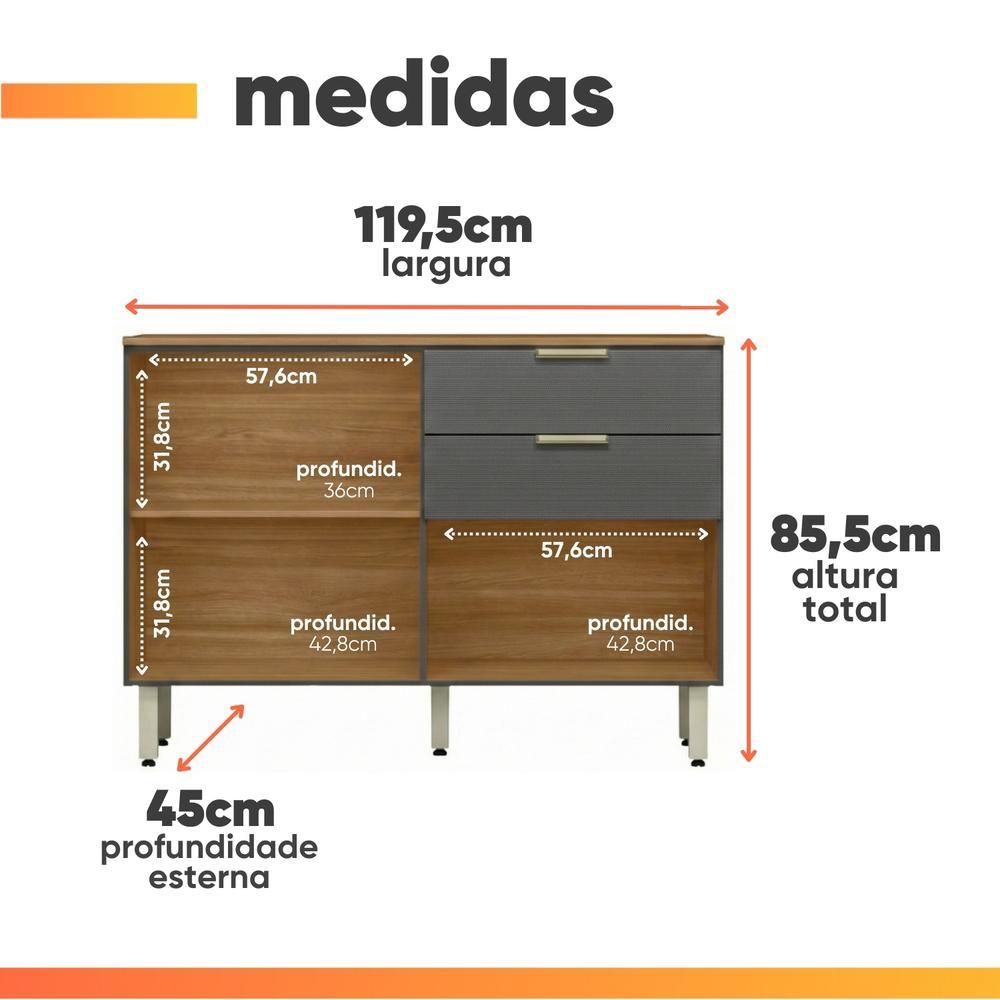 Balcão de Cozinha 1,20m 2 Portas 2 Gavetas Alba