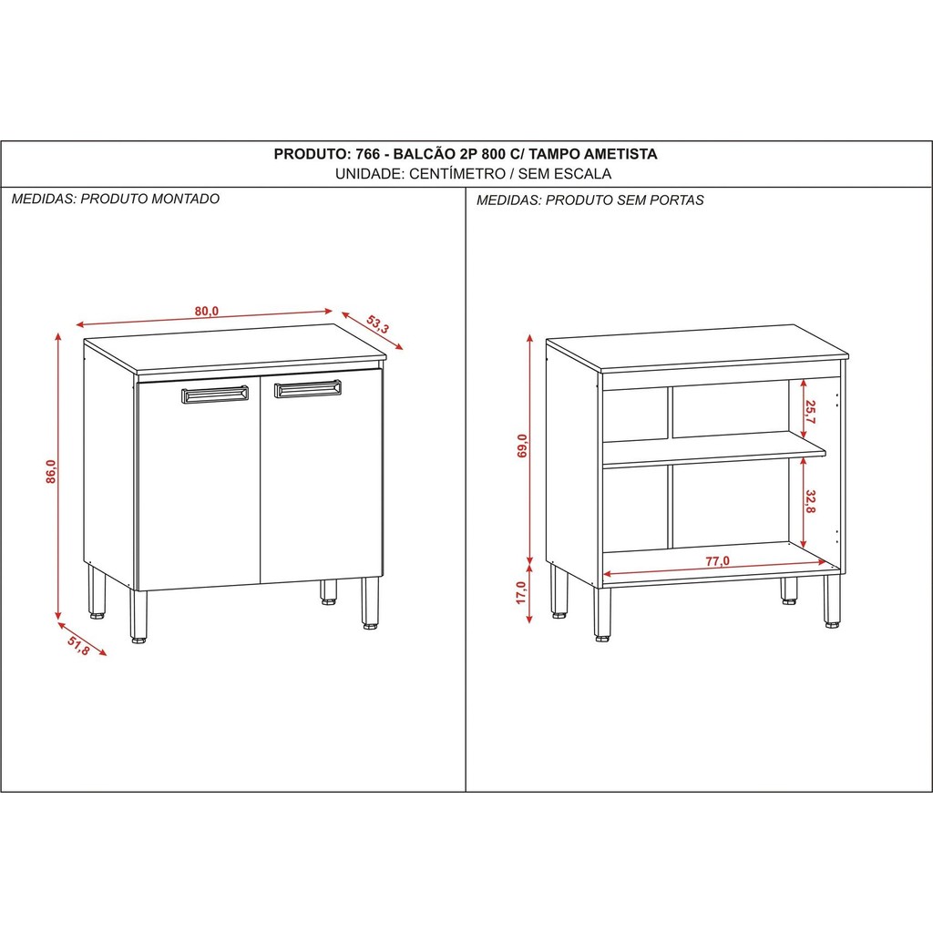 Balcão de Cozinha 2 Portas 80cm com Tampo Amestita Kits Paraná