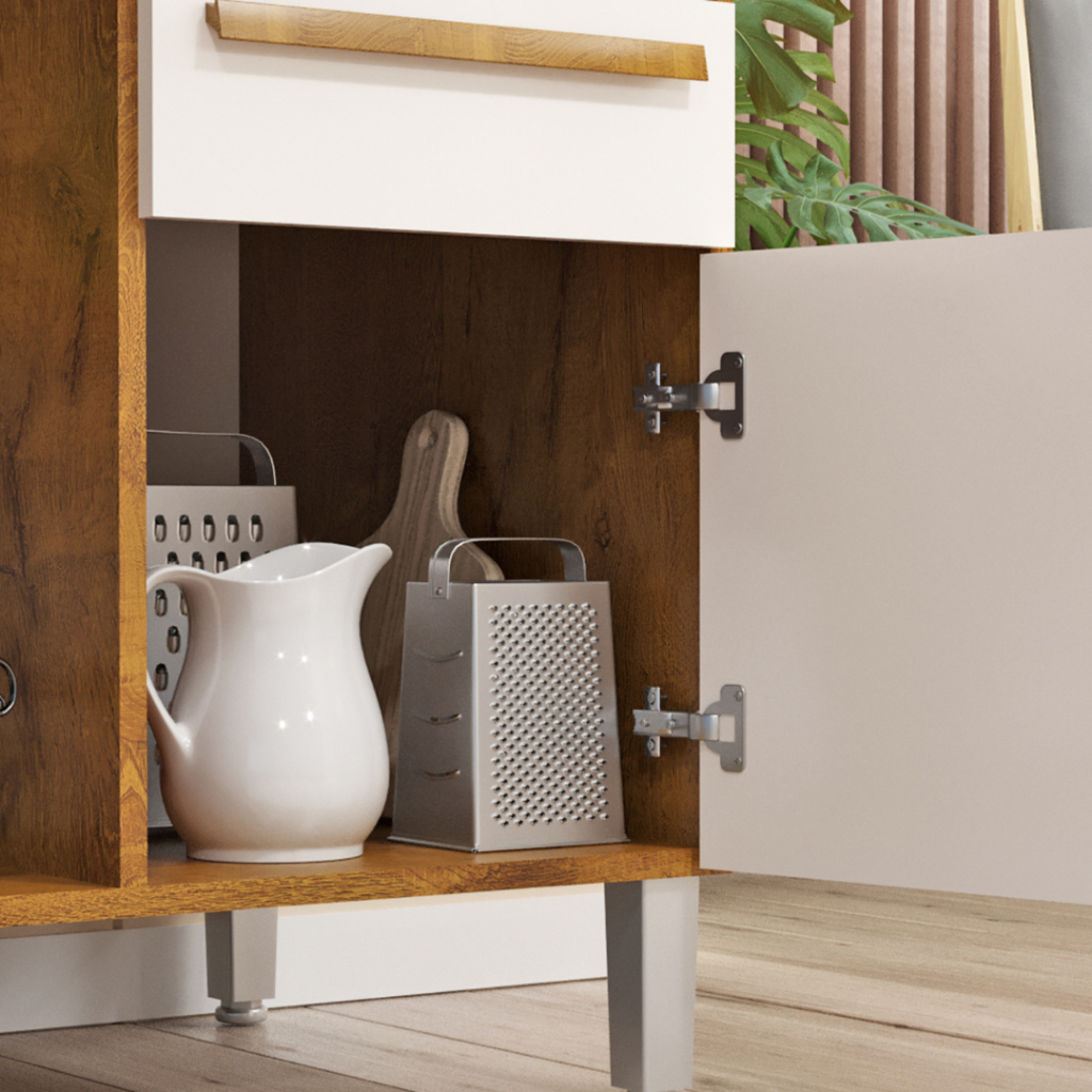 Mais espaço e praticidade para sua cozinha! Este balcão conta com 3 portas que oferecem amplo espaço interno para organizar panelas, mantimentos e outros itens essenciais. As 2 gavetas são perfeitas para guardar talheres e utensílios, garantindo tudo sempre à mão. Com design versátil e funcional, é a escolha ideal para quem busca aliar organização e estilo na decoração da cozinha. Somente com a Balcão de cozinha 3 portas você tem: • 1 prateleira; • 2 gavetas com corrediças metálicas; • Puxadores em MDF; • Fabricado em MDP; • Acabamento Touch Alto-Relevo ou Alto Brilho UV (na cor Branca e off-white); • Fácil montagem; • Acompanha 5 pés reguláveis; • Acompanha manual de montagem; Medidas: Altura 83cm X Largura 120cm X Profundidade 51,5cm x Peso 42kg Não nos responsabilizamos pela montagem ou instalação do produto. Sugerimos a contratação de um serviço terceirizado de montagem ou de algum profissional experiente de sua preferencia. Não indicamos serviço de montagem. Imagem meramente ilustrativa.