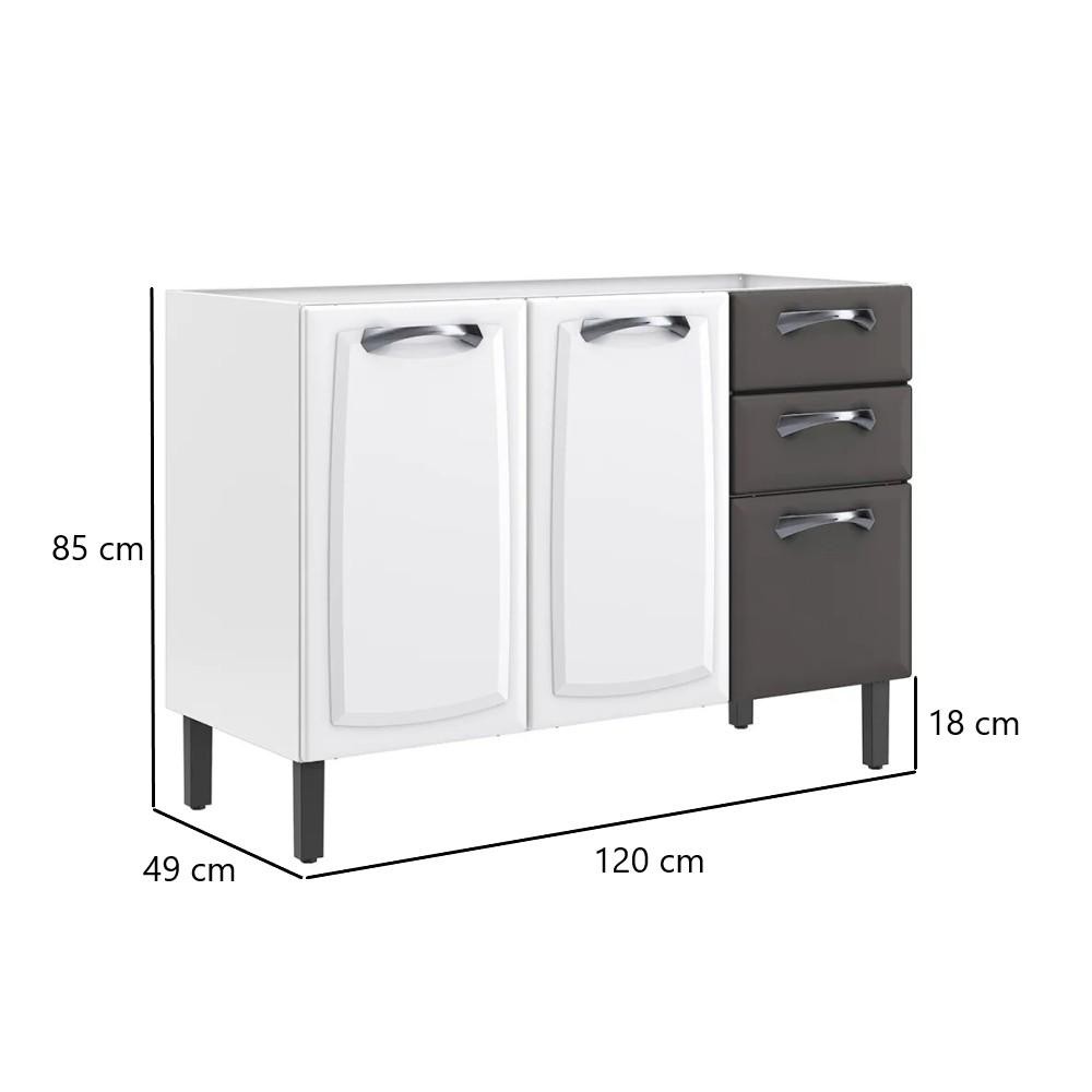 Balcão de Cozinha 3 Portas 2 Gavetas Itatiaia New Premium de Aço 120cm Branco/Grafite