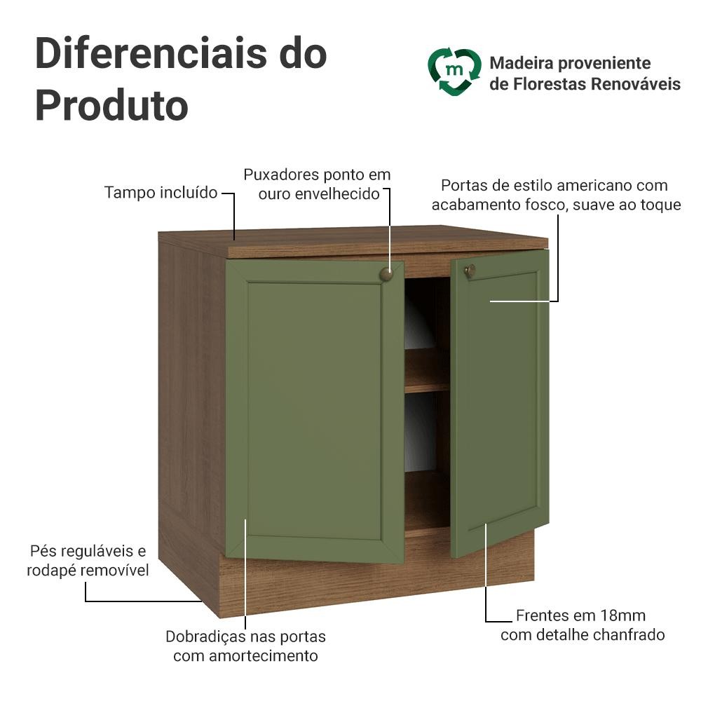 Balcão de Cozinha 80 cm 2 Portas Rustic/Verde Vik Madesa